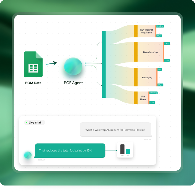 Most agents allow you to adjust inputs and re-run. For example, with Emissions Calculation, you can correct flagged data and re-run the transformation. With Product Intelligence, you can update assumptions (use phase, manufacturing energy) and the PCF recalculates. Some outputs, like Gap Analysis reports, can be reviewed and refined for your specific context.